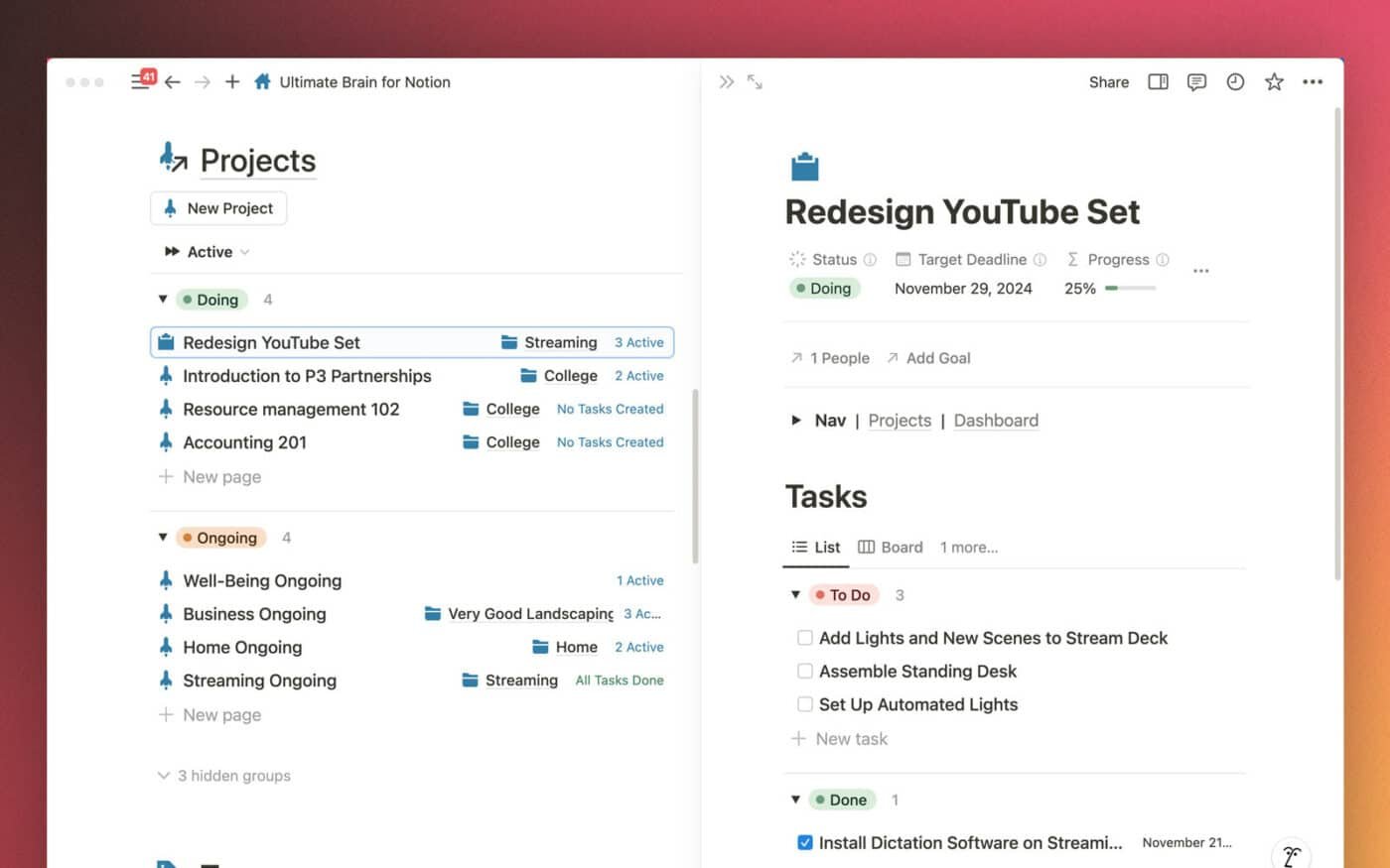 Ultimate Brain brings tasks, projects, notes, and goals seamlessly together in Notion - creating a truly all-in-one second brain.