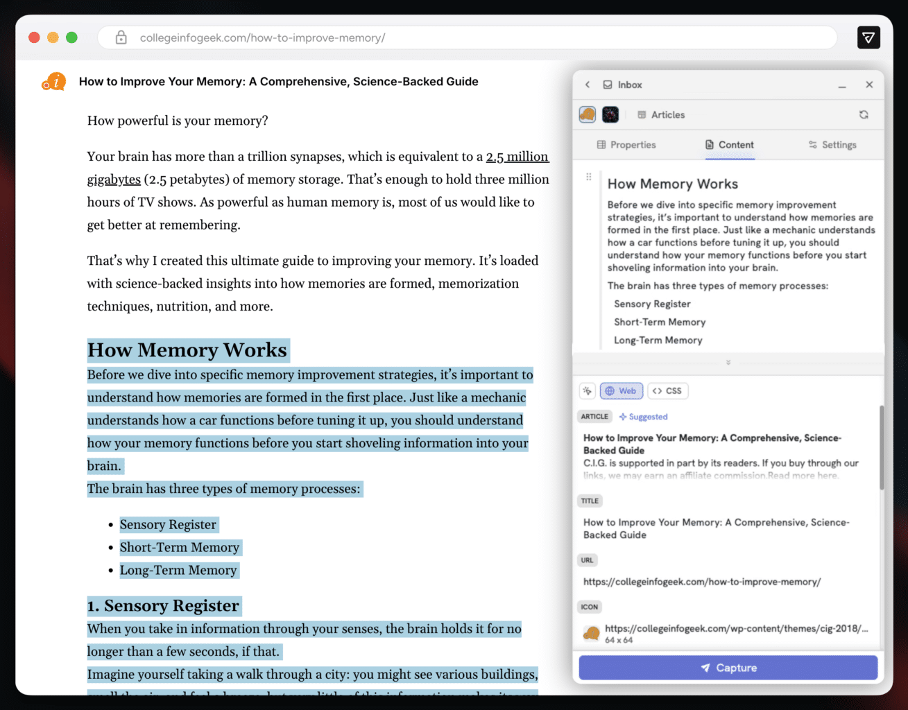 Luckily, we’ve got you covered there as well. In addition to our Notion templates, my team built a powerful (and free) web clipper and quick-capture tool called Flylighter, which you can use to capture: