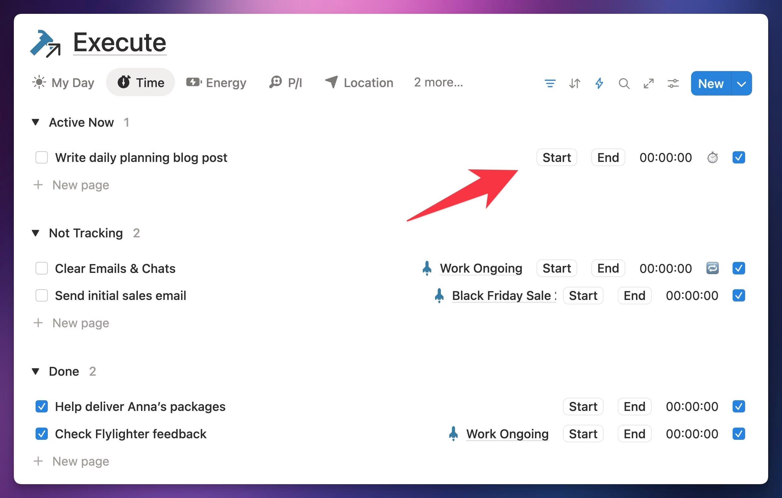 If you’re a Notion nerd like I am, try your hand at building the My Day functions into your existing task manager. Alternatively, you can get it all done for you – including the Context Tags and Time Tracker – by grabbing a copy of Ultimate Brain: