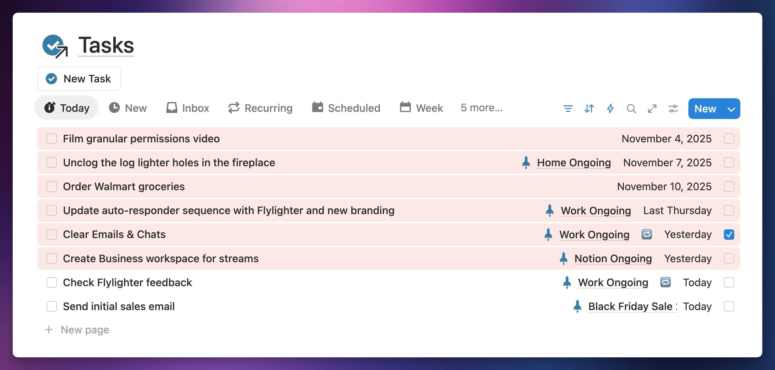 First, you’ll need some kind of task manager in Notion. If you’d like, you can follow my 90-minute task manager masterclass to build one from scratch:
