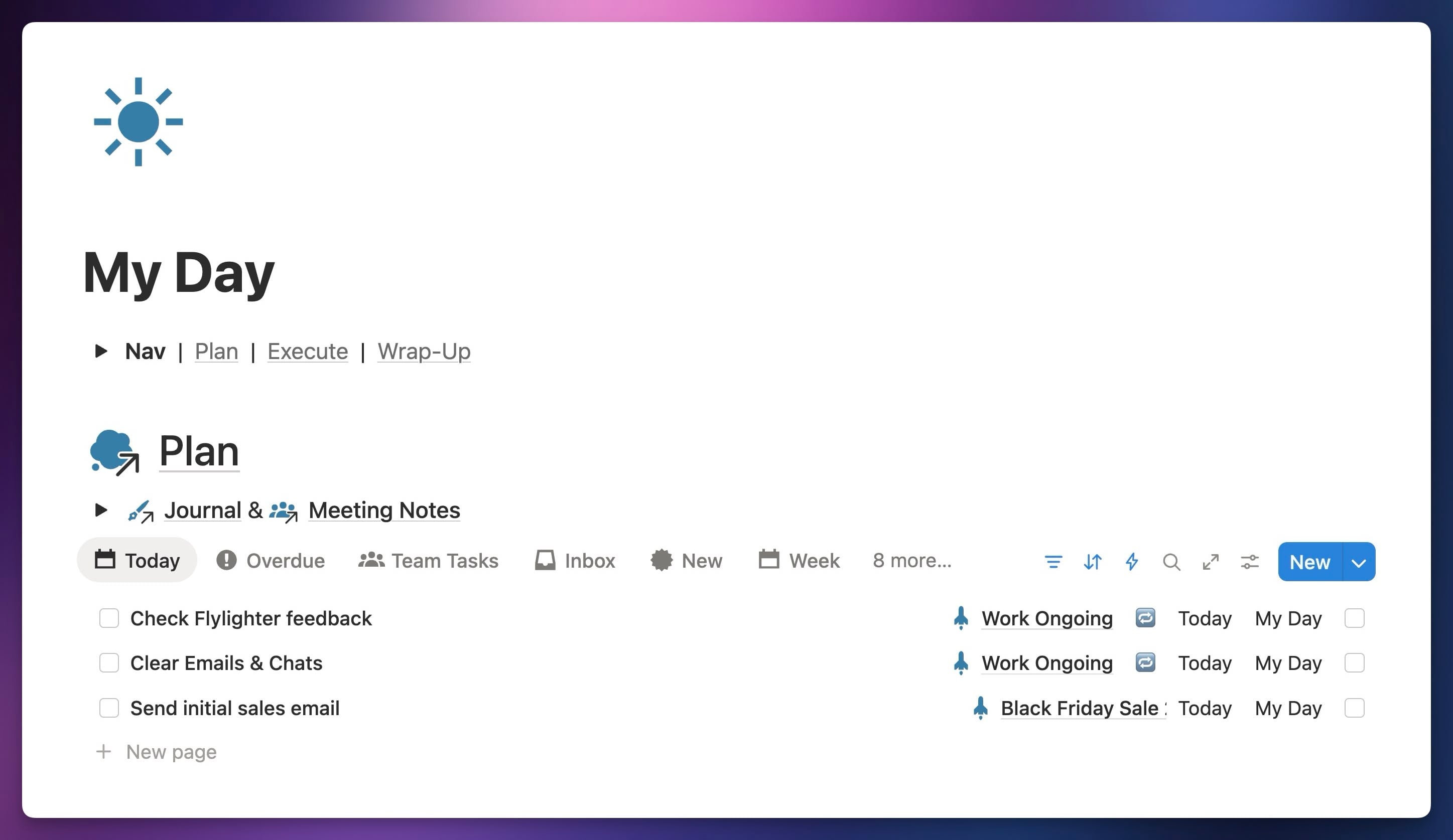 When I sit down to work each day, the first thing I do is head to a page I’ve built in Notion called My Day.