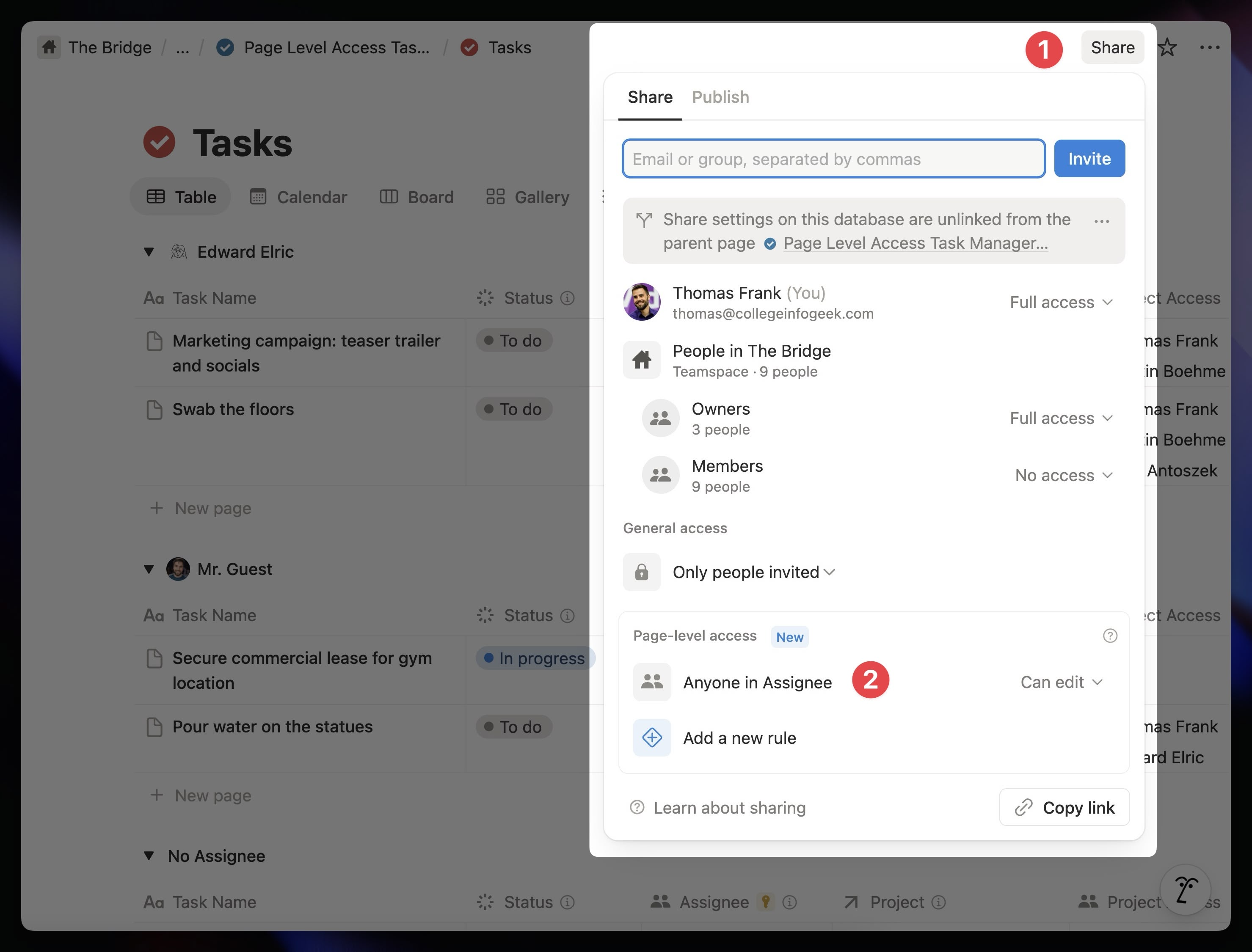 However, I’ve added a page-level access rule as well. Anyone in the Assignee property gets Can Edit permission on that page.