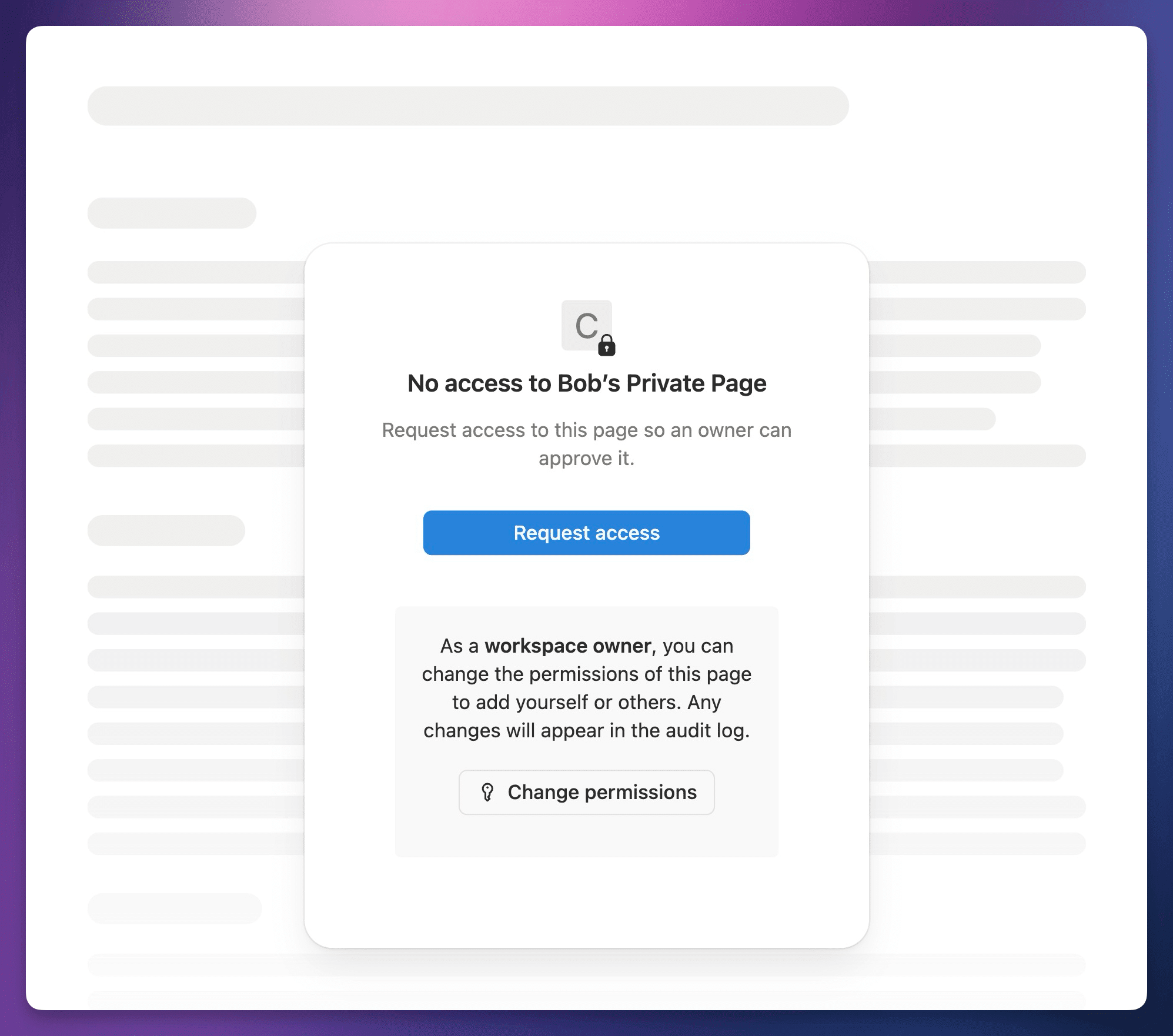 When you do, you’ll see a “No Access” popup. In all other Notion plans, the only option here would be to Request Access.